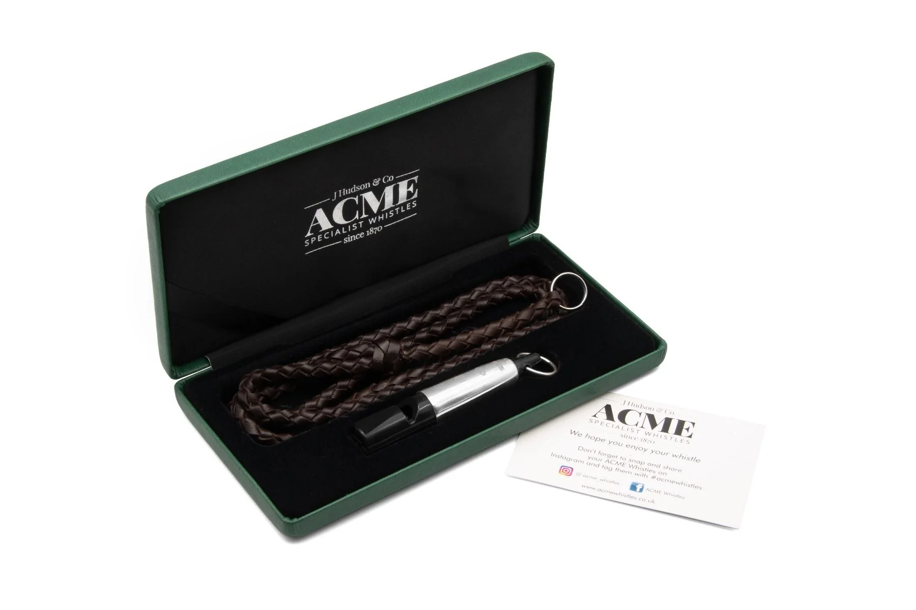 Le sifflet pour chien est livré dans un élégant coffret vert avec une lanière en cuir. Très polyvalent pour le contrôle de près et de loin de toutes les races de chiens. Sa fréquence unique le rend parfait pour une utilisation en ville et à la campagne.