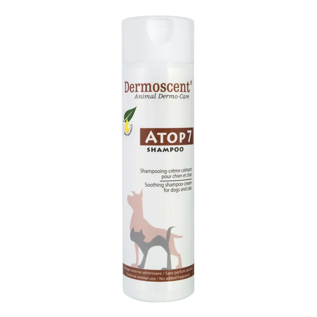 Atop 7 Shampoo est un shampooing-crème calmant pour les peaux irritées, sèches ou à tendance allergique des chiens et chats. Sa formule concentrée riche en acides gras essentiels (oméga 6 et 3) extraits de plantes et autres actifs naturels, a été spécifiquement conçue pour les chiens et les chats (pH physiologique) sujets aux dermatites prurigineuses. Sans parfum ajouté, Atop 7 Shampoo a pour but de :